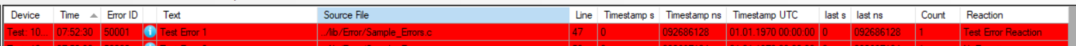 In this example the error with the predefined identifier SampleErrorID_1 is raised. The identifier should be unique in project, but it is not neccessary for the error-system to work. Due to this the uniqueness is not checked anywhere. It is a good practice to define all error-identifier in a central file Error_ID_Device.h.