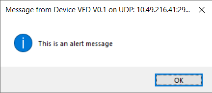 Some messages requires immediate alert to the user, for example if the requested action is failed. These messages are reportet in the error log as ordinary messages, but an additional message box is shown on the connected PC. This messagebox is shown only if the connection to the pc is already established when the alertmessage is fired.