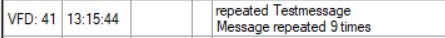 If a logmessage is repeated with no other messages in between, the Message is only stored once. The number of repetitions is stored after another message is sent.